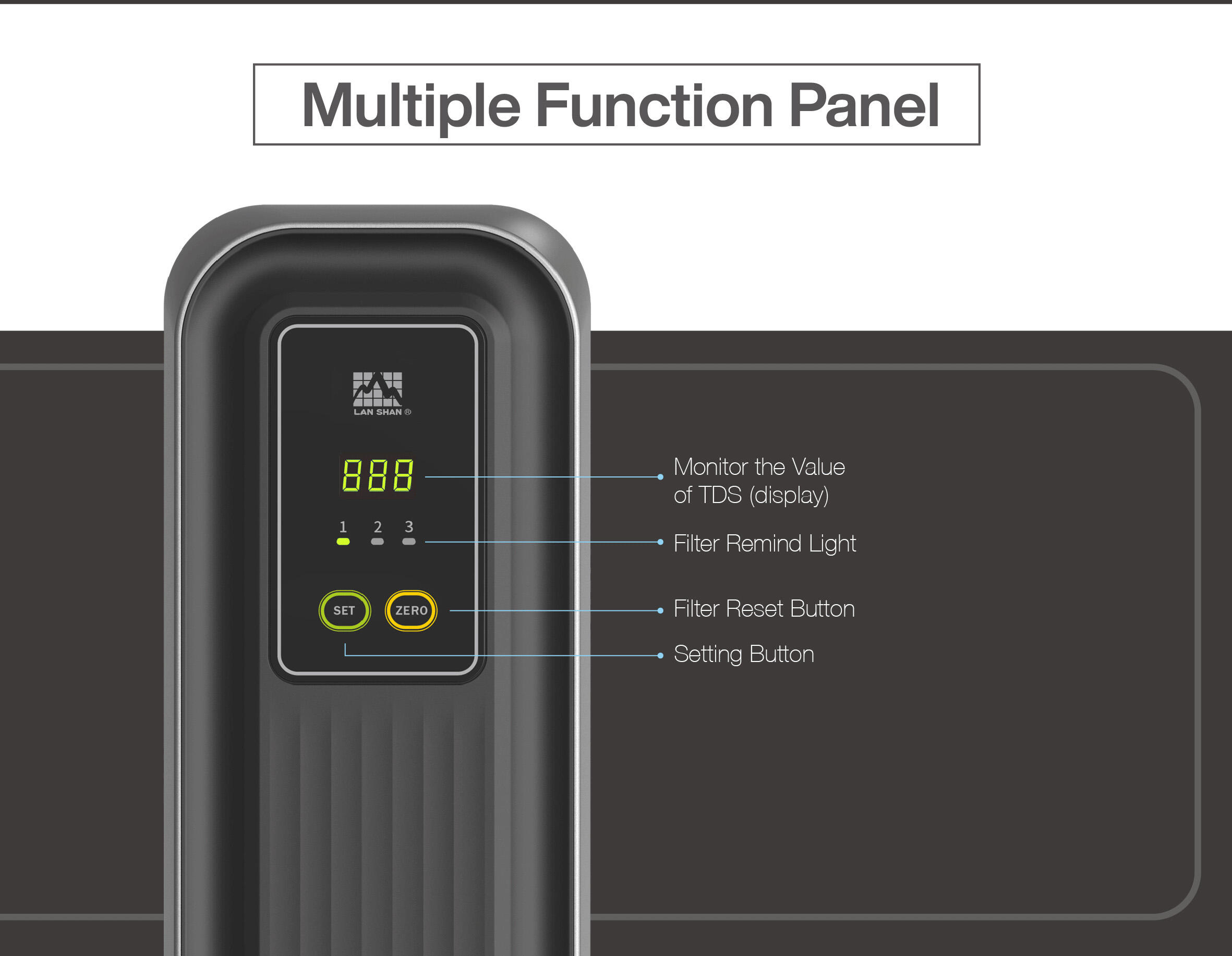The LSRO-800DE is an under-sink reverse osmosis system that purifies tap water directly—without the use of a storage tank. By filtering water on demand, it reduces the risk of bacteria buildup and saves space. It will reminds users when to replace filters—helping ensure consistently fresh, clean, great-tasting water.